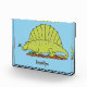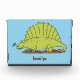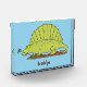 This funny green dimetrodon dinosaur is sharing space with a bug.