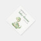 These cute baby shower napkins feature a green watercolor dinosaur below the words "baby shower" in green hand printed font. Personalise the text with the name of the mum-to-be and the date in charcoal grey sans serif.
