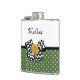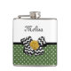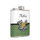 Cute Green Dots Yellow Rose Chevron Bow and Name Hip Flask