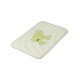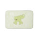 Cute kid's bath mat done in a green and white quatrefoil pattern, with cartoon graphics of a green and white polka dot elephant, in the middle. Matching bath decor is available.