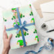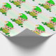 Cute green elf & a pot of gold on pastel colours wrapping paper