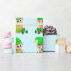 Cute green baby elf with a pot of gold on light blue Gift Wrapping Paper.