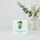 Business cards with a cute green illustration of a pig standing up on his back feet, dressed in fancy hat, vest and pants.
