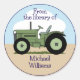 Cute Green Farm Tractor Personalised Bookplate Classic Round Sticker
