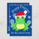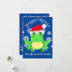 Cute Green Frog Christmas Santa Hat Cartoon Blue Holiday Card