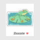 A cute cartoon style illustration of a small green frog standing on a lily pad in a pond. Mindful anyone who loves frogs