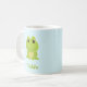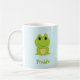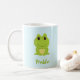 Showcasing an adorable green frog against a serene blue background, evoking a delightful sense of whimsy and charm. Personalised with a custom name, this artwork becomes a heartwarming and unique gift.