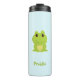Showcasing an adorable green frog against a serene blue background, evoking a delightful sense of whimsy and charm. Personalised with a custom name, this artwork becomes a heartwarming and unique gift.