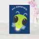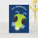 Cute green glow bug firefly cartoon illustration card