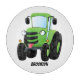 This cute green smiling tractor is ready for work on the farm! Drawn in fun cartoon illustration style.