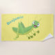 Cute green happy grasshopper cartoon beach towel