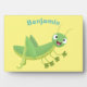 This happy green grasshopper is saying hello. Drawn in fun cartoon style for insect fun!
