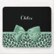 Cute Green Jaguar Print Girly Jade Bow and Name Mouse Mat