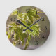 Cute green maple branch with small leaves round clock