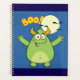 organize your schedule with this cute green monster spiral planner featuring a friendly horned creature and a bold boo design on the cover. the vibrant cartoon illustration of a happy lime mascot under a full moon provides a playful and inspiring look for your daily notes and to-do lists. perfect for school work or home use this spooky character planner helps you stay on track while adding a touch of whimsical holiday spirit to your desk or bag.