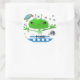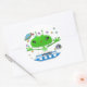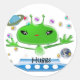 Cute Green Outer Space Aliens with Space Ship Classic Round Sticker