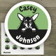 Cute Green Peeking Dog Back to School Name Classic Round Sticker