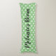 Cute green and white polka dot pattern custom girl's name Body Pillow for bed. Elegant bedroom home decor design personalised with name or quote. Stylish script typography template. Great for kid's room, nursery, couple, sister, daughter, friends etc. Customise into any colour.
