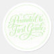 Cute Green “Promoted to First Grade” Design Classic Round Sticker