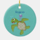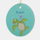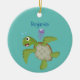 Cute green sea turtle happy cartoon illustration ceramic tree decoration
