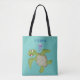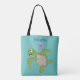 Cute green sea turtle happy cartoon illustration tote bag