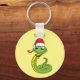 This cute green snake is ready for Christmas celebration! Drawn in fun cartoon style.
