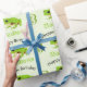 Cute Green Tree Frog Pattern Name Age Birthday Wrapping Paper