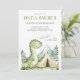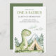 Cute Green Watercolor Dinosaur 1st Birthday Party Invitation