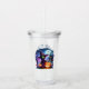 Celebrate and go Boo! Add a Spooky Cute Decorative Touch to your Halloween Table with this Happy Little Witch Party Tumbler. Witch Themed Party Tableware is Perfect for your Halloween Bash! It's sure to bring laughter and joy to your Ghouls and Goblins! Keep your Halloween Drinks Spooky! Eat, Drink, and be Scary! This Spellbinding Halloween Tumbler features a Cute Little Green Witch clad in her Purple Witches Hat and Cape. She is holding a Jack-o-lantern. A Cheerful Pumpkin sets the scene, with a Haunted House in the background. Bats fly high in the Night Sky in front of the Full Moon. A Creepy Tree watches over the Eerie Flower Garden, and a Rickety Wooden Fence surrounds the grounds. Personalise this Halloween Tumbler to your Hearts content!