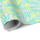Cute green yellow floral pattern wrapping paper