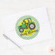 Cute Green & Yellow Tractor; Plaid Baby Shower Classic Round Sticker