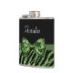 Cute Green Zebra Print FAUX Glitz Bow With Name Hip Flask