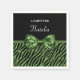 Your teenage girl will feel immersed in girly luxury with these chic designer green and black glitter-like zebra print paper napkins with a sequin sparkle ribbon tied into a luxe bow. Personalise this glitz and glam animal print fashion design by adding her name. Flat printed image, NOT actual glitter or ribbon.