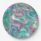 Cute Greenery Pink Blue Abstract Marble Pattern Paper Plate