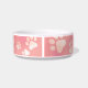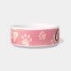Cute Grey Cartoon Kitten on Pink Pawprint Bowl