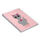 Cute Grey Cat & Name Calligraphy on Pink Notebook