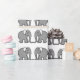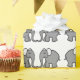 Rows of cute grey cartoon elephants with round ears parade the paper in an even pattern. The elephants smile happily with closed, long lashed eyes, while their trunks rest calmly on the floor.
