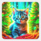 Cute Grey Kitten with Christmas Trees Square Sticker