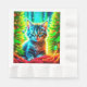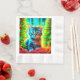 Cute grey kitten sitting in front of lit up Christmas trees paper napkins for your Christmas party.