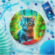 Cute grey kitten sitting in front of lit up Christmas trees paper napkins for your Christmas party.