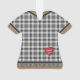 Plaid dress, trimmed with snowflake buttons and lace, showcases your loved one's name. On the back is a small heart "tattoo" in rustic red, with the wording, "Christmas 20xx". Add your own information by following the "Personalise this template" link.