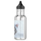 Water bottle with a cute Christmas photograph of a grey tabby cat playfully biting a red santa hat.