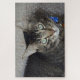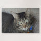 Cute Grey Tabby Cat Green Eyes Elegant Jigsaw Puzzle