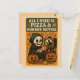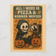 Celebrate Halloween with a playful twist in this unique postcard design featuring an adorable Grim Reaper enjoying a slice of pizza while watching horror movies. Surrounded by glowing jack-o’-lanterns, autumn leaves, and retro spooky details, this illustration perfectly blends creepy and cute. Ideal for sending Halloween greetings, adding to seasonal décor, or gifting to pizza lovers with a sense of humour. Whether you enjoy quirky artwork, gothic humour, or cosy spooky vibes, this postcard is a perfect way to share the fun side of Halloween.