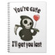 Funny and lovely Grim Reaper with romantic heart balloon says “You're cute, I'll get you last". Perfect for Valentines Day as well as for Halloween. For kids and for adults.