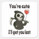 Funny and lovely Grim Reaper with romantic heart balloon says “You're cute, I'll get you last". Perfect for Valentines Day as well as for Halloween. For kids and for adults.