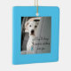 at christmass as a hanging decration for the chritmass tree.. its white porcline or cramic but very well made with added photo on one side.. also has a lovley red bag to keep it in.. execlent printed text in bold and black stands out well aganst the blue background of the photo.