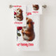 Add a touch of cuteness to your living space with this bath towel set, which features an AI-generated design of a pair of Abyssinian guinea pigs exchanging a red rose. Customise messaging as desired.