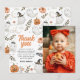Adorable watercolor Halloween birthday thank you card featuring sweet ghosts, pumpkins, and pastel details. Perfect for sending festive gratitude to your guests.