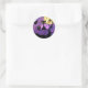 This cute Halloween sticker features a black cat and owl on a spooky tree branch on a moonlit Halloween night. There is a large moon and bats in the purple twilight background. These are available in different sizes and shapes, pick your favourite! Makes a great item for projects, cat lovers, or gifts! Happy Halloween!